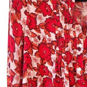 Gap Women's Red Floral Long Sleeve Pintuck Blouse Size S