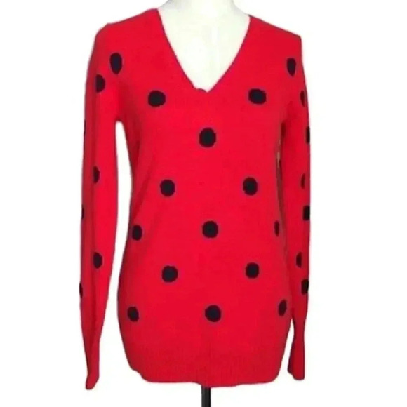 Gap Wool Blend Red Sweater with Blue Polkadots