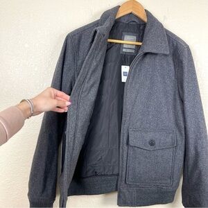 NWT Gap Wool Heather Grey Front Zip Bomber Jacket