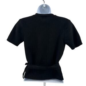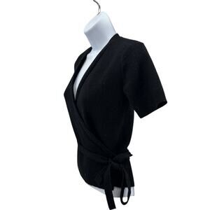 Gap Wrap Top Womens M Black Sparkle Wool Blend Knit Short Sleeve Cropped V-Neck