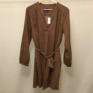 Gap Size XL NWT Leopard Animal Print Belted Long Sleeve Dress, Brown, Pockets. New With Tags.