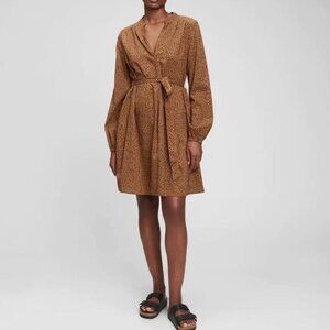 Gap XL NWT Leopard Animal Print Belted Long Sleeve Dress Brown Pockets