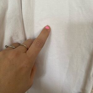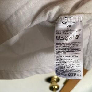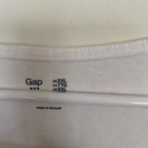 Ladies gap XXL Lisa three-quarter length sleeve white top nice preowned condition. Does have one small Mark as see. in the pictures that I pointed to other than that. Not noticeable when your room, but wanted to pointed out.