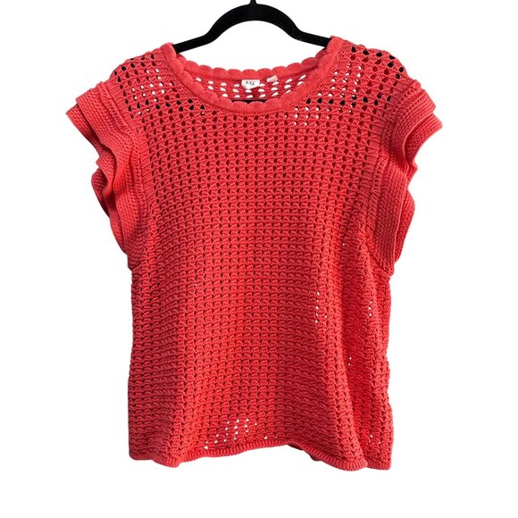 Gap Xl Coral Open Knit Sweater Top Lightweight Crochet Style Sleeveless
