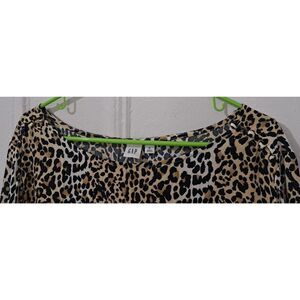 Gap Xl Womens Top Flowy Breezy Boat Neck Wide Sleeve Blouse Leopard Black Tan