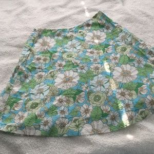 Gap Y2K Floral Print Seersucker Skirt A-Line Blue Green - Sz 6
