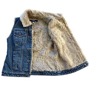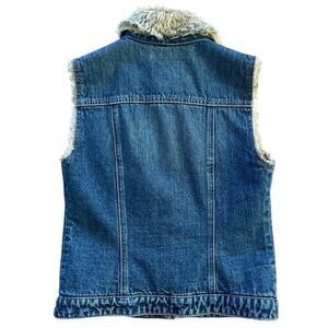 Gap Y2K Vintage Blue Denim Vest Size XS Faux Fur Lined Button Front Collared