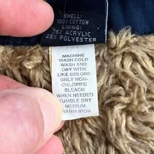 100% Cotton Shell 75% Acrylic 25% Polyester Lining