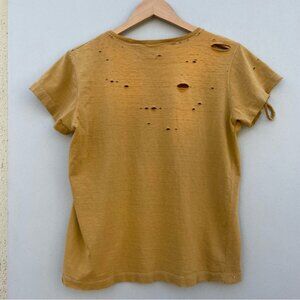 Gap V-neck yellow distressed with intentional cut holes, short sleeve tee. Size Med. 25"underarm to underarm, 31" length.