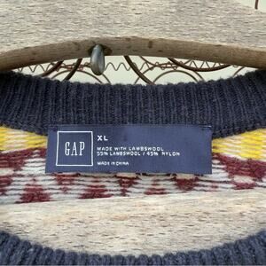 Gap Zig Zag Crewneck Patterned Multicolor Lambswool Sweater XL