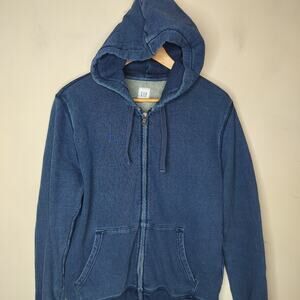 Gap Zip Up Hoodie Sweatshirt Indigo Blue Cotton Full Zip