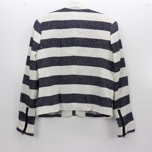 Gap Zip Up Stripped Sweater Cardigan Womens Size 4 White And Blue Lined Cotton