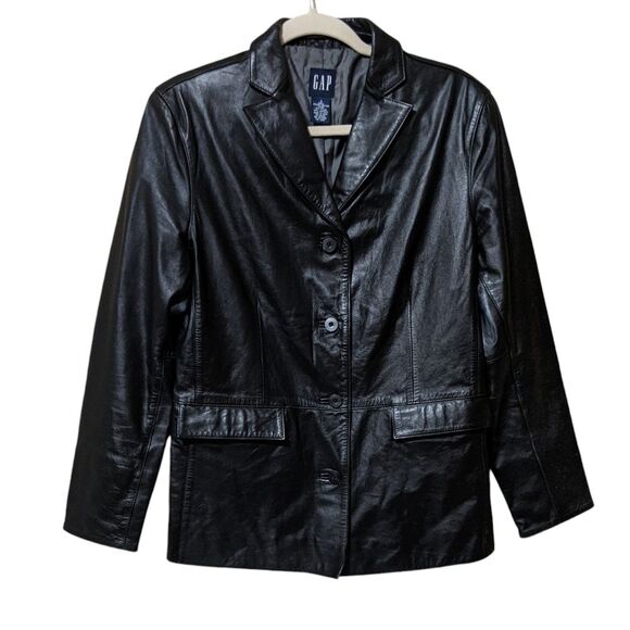 Gap black leather jacket Small button front flap pocket DIY Flying Monkeys Y2K