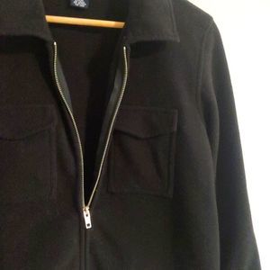 Gap Soft black fleece full zip jacket with two front fold over pockets .Great for layering in the cool weather .Gives a great look hits at the waist line.