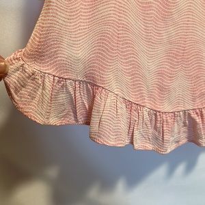 Pink and white 3/4 sleeve blouse with ruffled bottom and ruffles on sleeves. Excellent condition, worn twice.