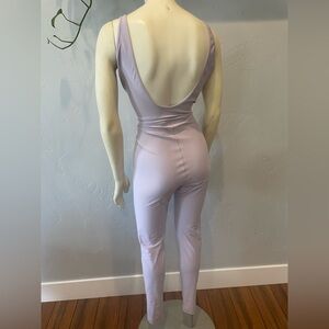 Elevate your style with this chic lavender sleeveless jumpsuit. Perfect for any occasion, it offers a sleek and comfortable fit. Excellent like new condition please see pictures for measurements.