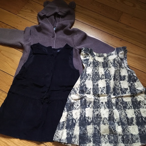 Baby gap 18-24m Knitted cardigan purple Navy corduroy dress Plaid cotton dress(works with inner on winter or itself on summer)