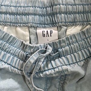 EUC, worn one time. Ankle length easy chambray pants. Front pockets with drawstring waist. Back “ fake” pockets