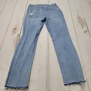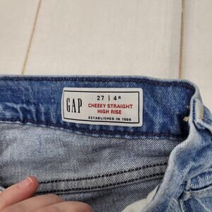Cute Gap "Cheeky Straight" high rise jeans! Lighter wash with natural distressing. Barely worn, just have a faint mark on one leg. Size 27/4 regular.