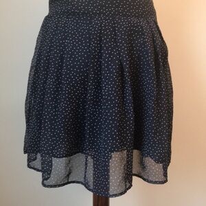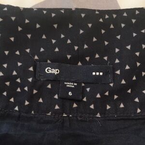 Gap chiffon skirt in Navy with white triangle pattern. Pleats at waistband and flared skirt. Floaty and lightweight feel. Fully lined in cotton. Size 6.