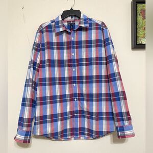 Gap Factory classic fit plaid button up shirt long sleeve cotton blue red men’s size L