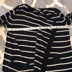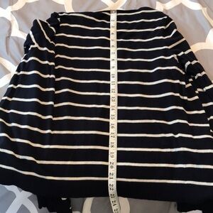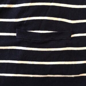 Gap cotton blend cardigan with side pockets in navy with white stripes. Lightweight material and draped fit with no front buttons. Striped. Size medium.