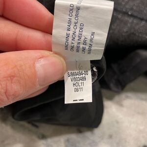 Gap dark grey woman’s sleeveless dress. The dress has hints of white all over it. Its 80% polyester and 20% wool. it’s a woman’s size 6. It has cute pockets on the front side of the dress.