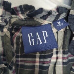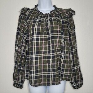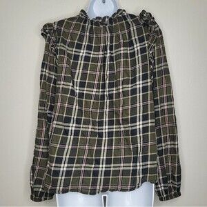 Gap dark plaid ruffle academia preppy high neck modest long sleeve top size med