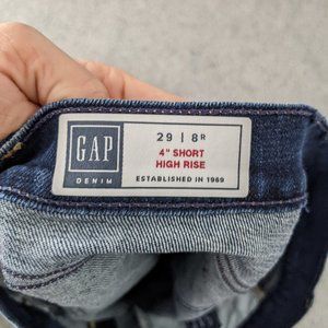 Gap denim high rise 4" shorts 29 8. Good condition, worn once. Dark wash, frayed edge