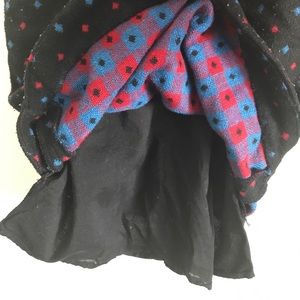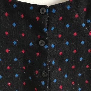 Cute tweed shift dress in black with diamond patterns of blue and red. Looks adorable with stockings. The material is prone to fabric fuzz balls but if you have a machine that removes it, it should be good. Posting at very low price.
