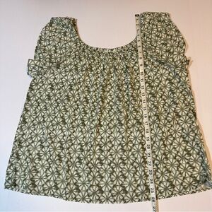 New with tags. Cotton/rayon blend but feels like a soft, breezy linen. Green and cream pattern. Size large. No flaws.