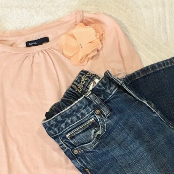 School outfit girl - denim boot cut jeans and floral long sleeve top 10