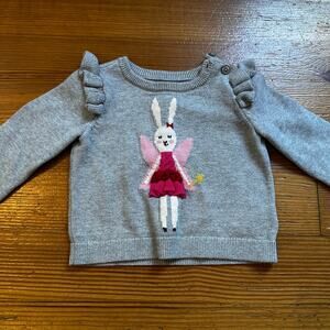 Gap gray pink bunny fairy knit ruffle crew sweater SIZE 6-12M