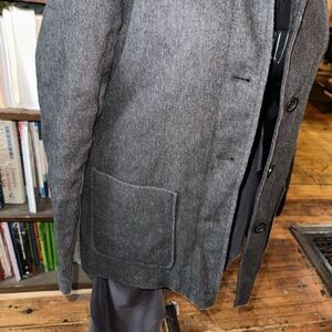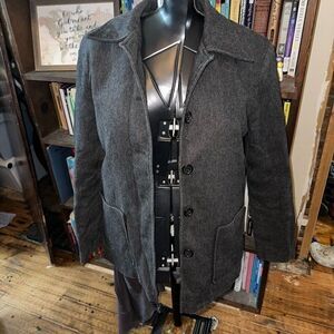 Gap elevated basics, recycled wool blend, professional, gray, business casual peacoat. Lined. Great, versatile coat. In good, used condition. Approximately 21 inches from armpit to armpit, 28 inches long, 24 inch long sleeve. From a pet and smoke free house.