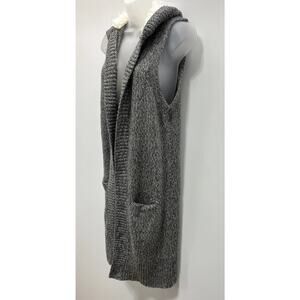 Gap gray wool-blend long line open front chunky sweater vest sherpa hood S NWT