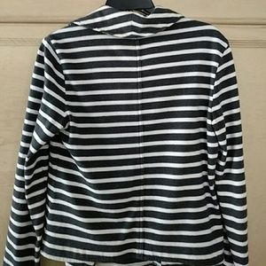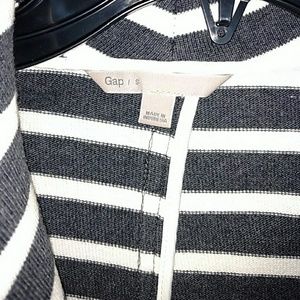 Gray & cream stripes with pockets, zipper off to the side. Worn 2x