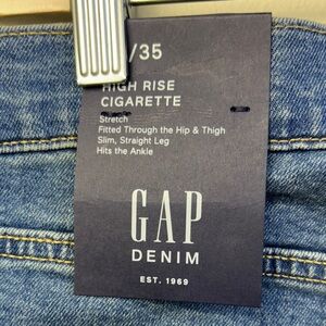 Gap high-rise cigarette stretch Stylish blue distressed jeans with a modern fit. Perfect for casual wear. Size 20/35. Waist measures approximately 20. Inseam measures approximately 35. Rise measures approximately 11. New with tags.