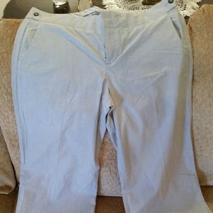 Gray and white pinstripe. Never worn. Great for work or casual.