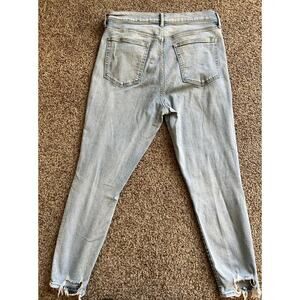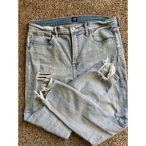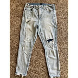I think these fit tight, more like a size 12/31 inch waist. Super cute distressed jeans. Rips are supposed to be there, no stains. I am 5'7" and they hit right above my ankle.