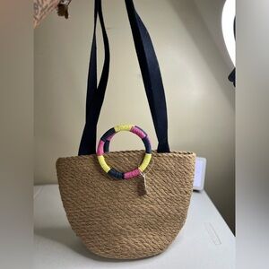 Gap jute tote bucket bag Tan Woven pink yellow blue Handle Beach Vacation NWT