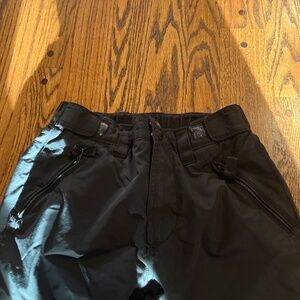 12 regular. Two side pockets, one thigh pocket and one back pocket.