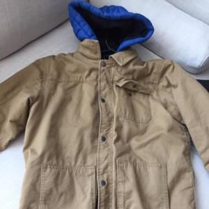 Super cute gap kids jacket tan color with blue parka lining and hood