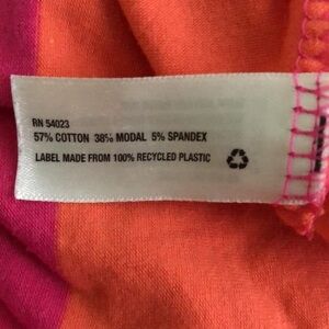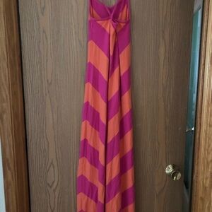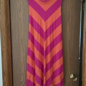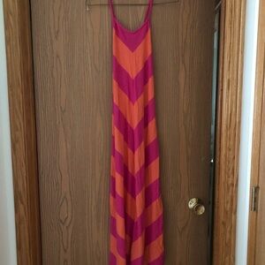 Cute summery Gap dress in a pink and orange chevron print. Dress is stretchy, with spaghetti straps that cross in the back. Size XS petite @3