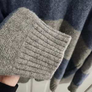 Elevate your wardrobe with this Gap men's sweater. Made from a blend of nylon and wool, this classic pullover features a grey and blue striped pattern with a tight-knit fabric type.