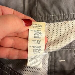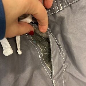 Gap men’s colorblock swim trunks, pockets, mesh lining, grey/orange, sz XL