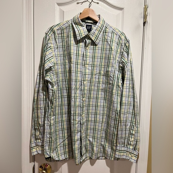 Gap mens large 16-16 1/2 cotton plaid button down shirt. 24” wide and 30” long. Smoke free home.