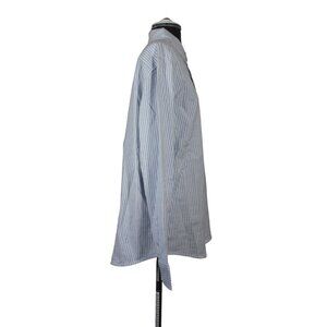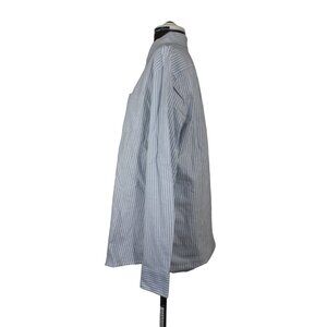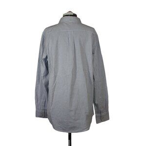 An essential basic button down collar, button front shirt with a light striped pattern.