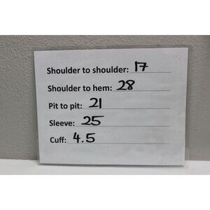 See measurements in images / listing and compare them to your best fitting garment to get sizing.