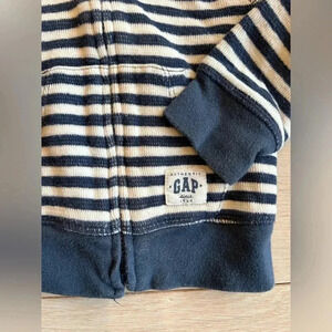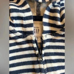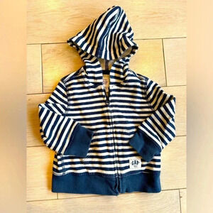 Gap navy and white striped zip up hoodie. Size 6-12 months. Gently used in great condition.