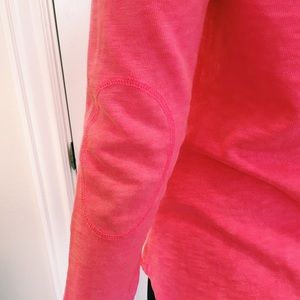 Great to wear with leggings. Goes out a little at the bottom. Cute elbow patches. Size medium but also small